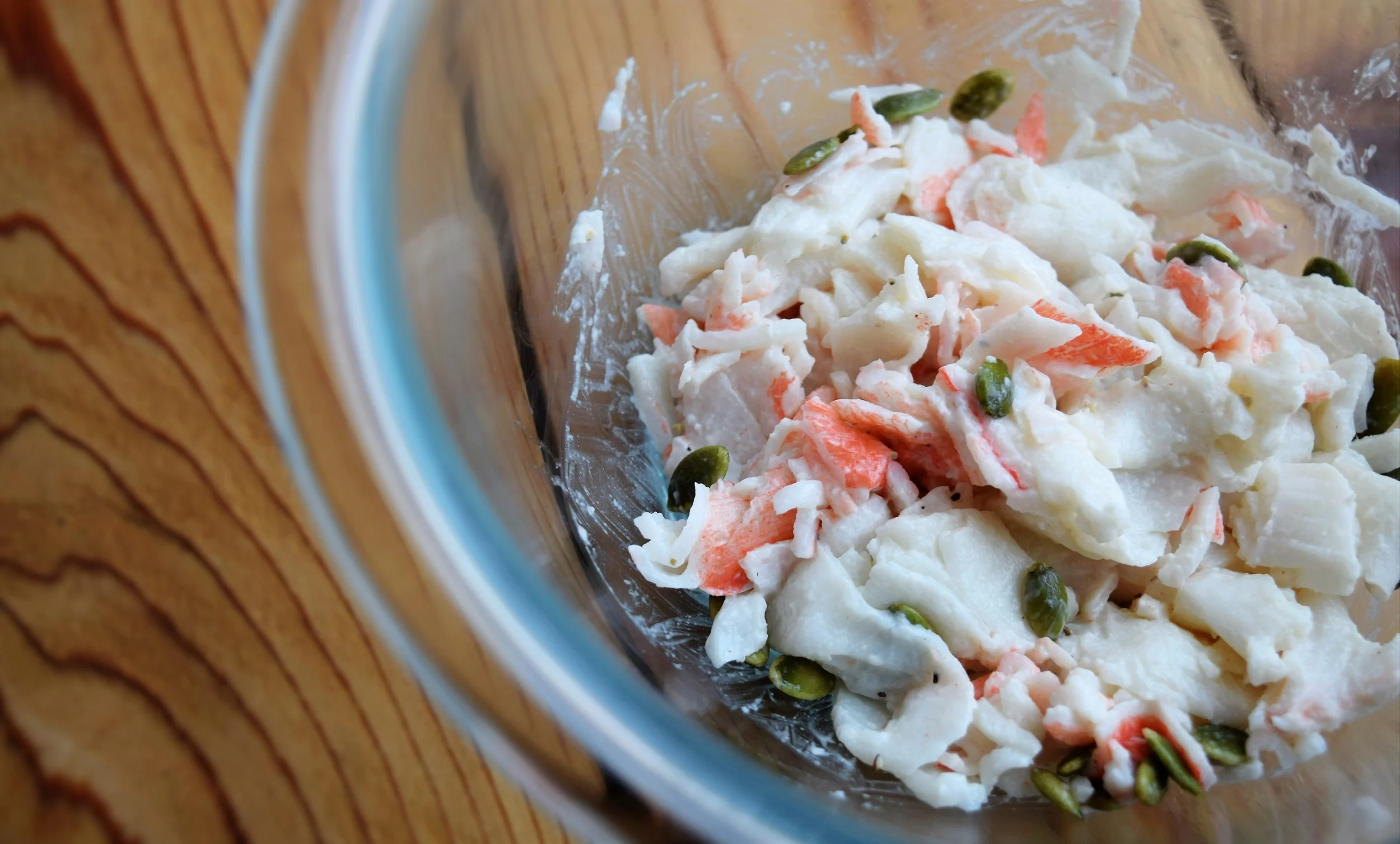 MIX krab meat, mayonnaise, salt and pepper. Voila! You have krab salad.