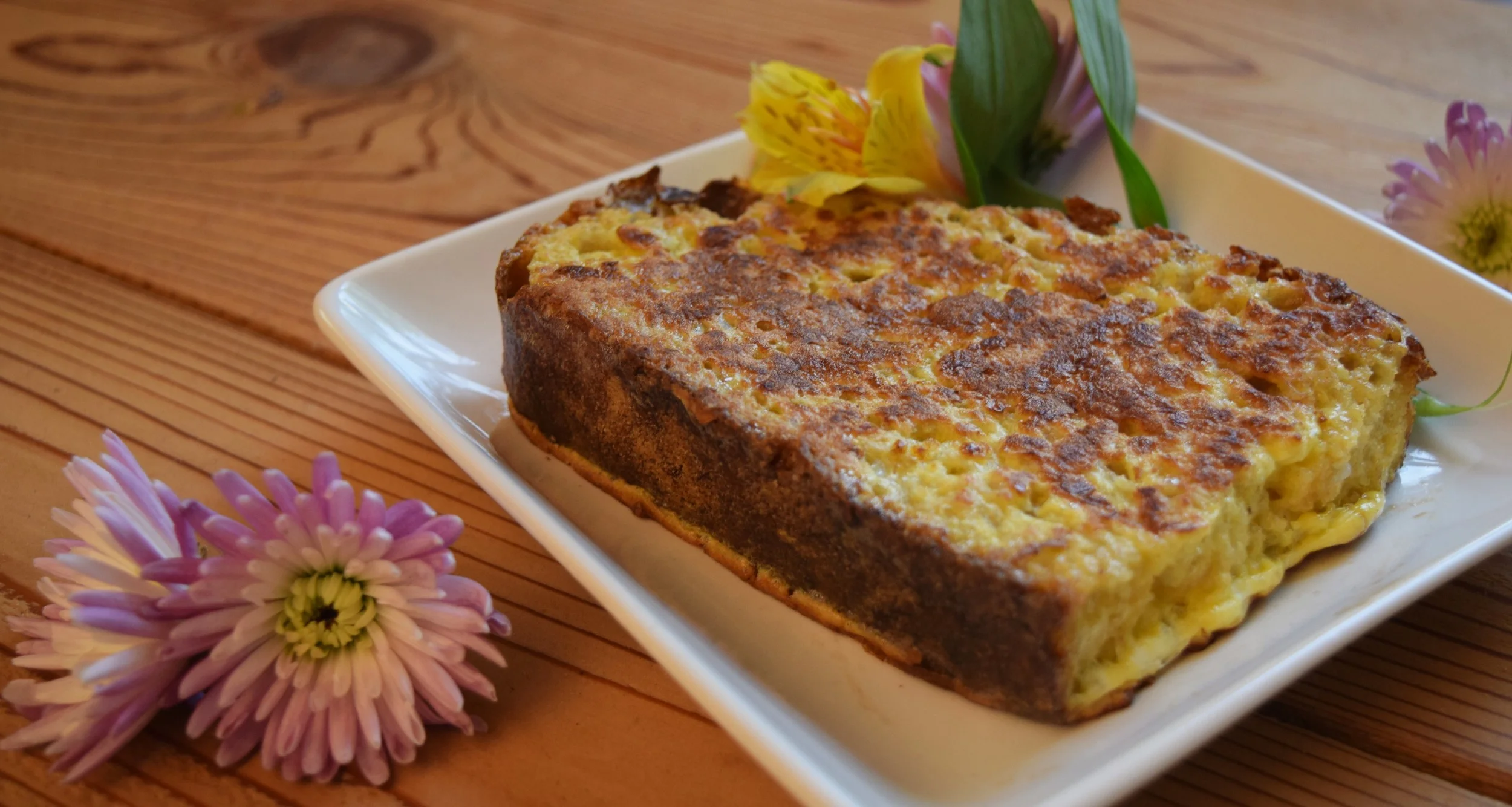 Decorate your french toast however you'd like. You can drench it in syrup, dust it with powdered sugar, or drizzle with honey. I don't normally top mine with flowers, but feel free to do so, as it is sure to make you feel special.